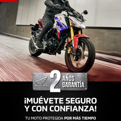 Honda garantiza que la motocicleta está libre de costos por defectos materiales o de funcionamiento por el período especificado. Esto sujeto a las condiciones establecidas en el manual de garantía. Es necesario tener las mantenciones al día en concesionarios oficiales Honda acorde al manual de garantía para mantener vigente la garantía. Válido solo para los modelos detallados en términos y condiciones.